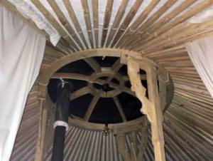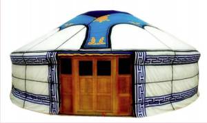 Structure is built from imported wood with spectacular handcrafted and hand-painted features. XL is three layers offering many exterior colors and patterns of canvas. Interior insulation is wool-felt. The lining interior is silk choice of colors . Hand painted and hand-crafted rafters , doors ,poles adorn the yurt. Our team of experts will design the yurt to your specifications .
